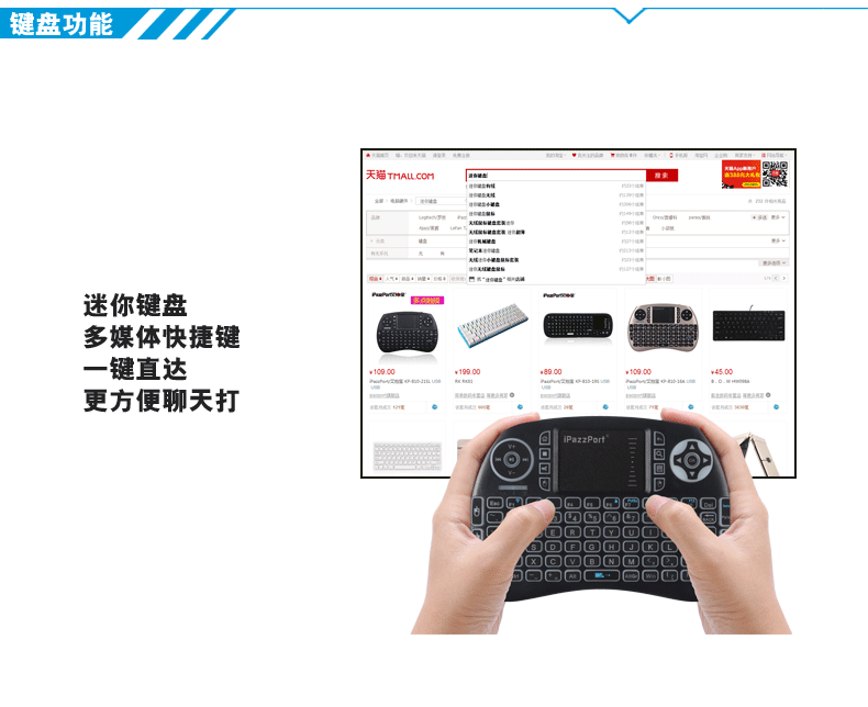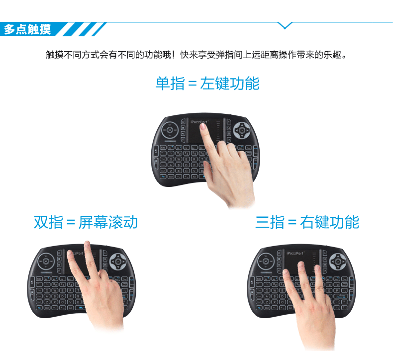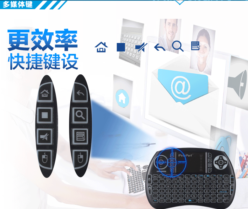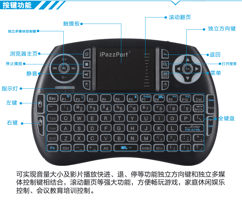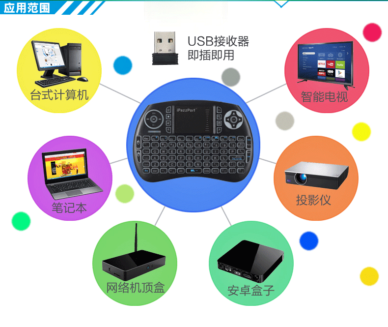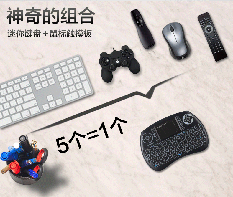 一款带触摸板组合的2 4GHz USB迷你无线键盘。 它被用作通用多媒体键盘遥控器,用于快速输入,精确移动和定位光标,兼容树莓派,电视盒,电视,电脑,机顶盒等。 带标准USB端口的电器都可使用。