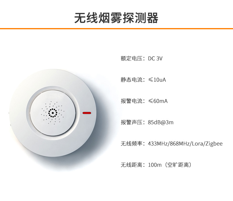 DS 005 00001 独立式光电感烟雾火灾探测报警器(ZigBee)是一款能够准确地检测烟雾,烟雾浓度超过限量时,传感器发出声光告警,并输出告警信号。